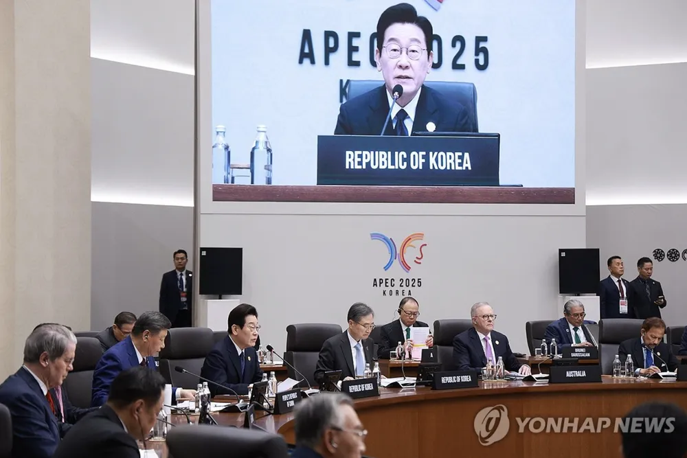 Tổng thống Hàn Quốc Lee Jae-myung phát biểu tại phiên thảo luận thứ 2 Hội nghị Cấp cao APEC 2025 ngày 1-11. Ảnh: YONHAP