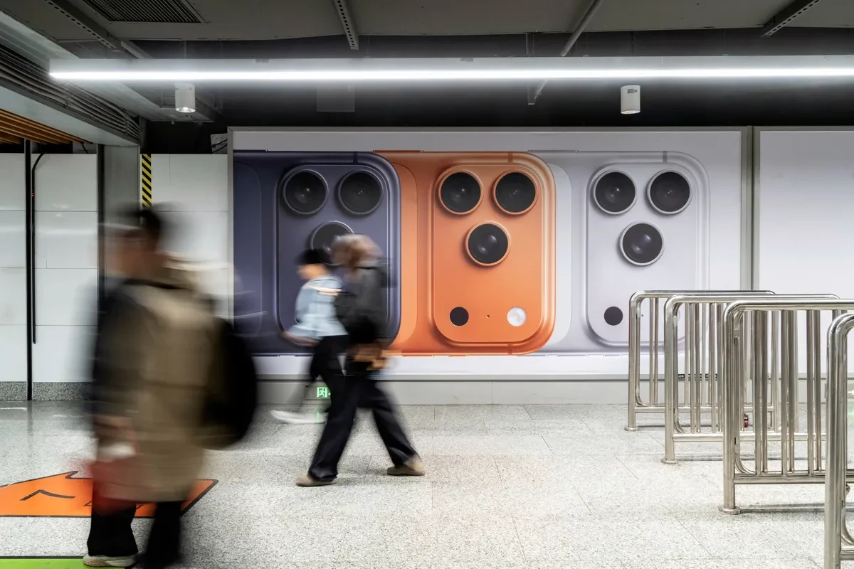 Quảng cáo iPhone 17 Pro tại một ga tàu điện ngầm ở Thượng Hải - Ảnh: Bloomberg