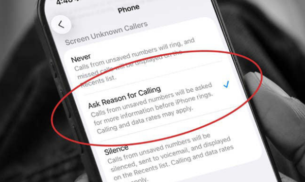 Tại đây có 3 tùy chọn. Tùy chọn “Never” không sàng lọc cuộc gọi và điện thoại vẫn đổ chuông khi có số lạ. Tùy chọn “Ask Reason for Calling” cho phép Siri sàng lọc số lạ trước khi iPhone đổ chuông. Tùy chọn “Silence” không đổ chuông mọi cuộc gọi từ số lạ, chuyển đến hộp thư thoại và hiện trong danh sách cuộc gọi nhỡ để người dùng xem lại.