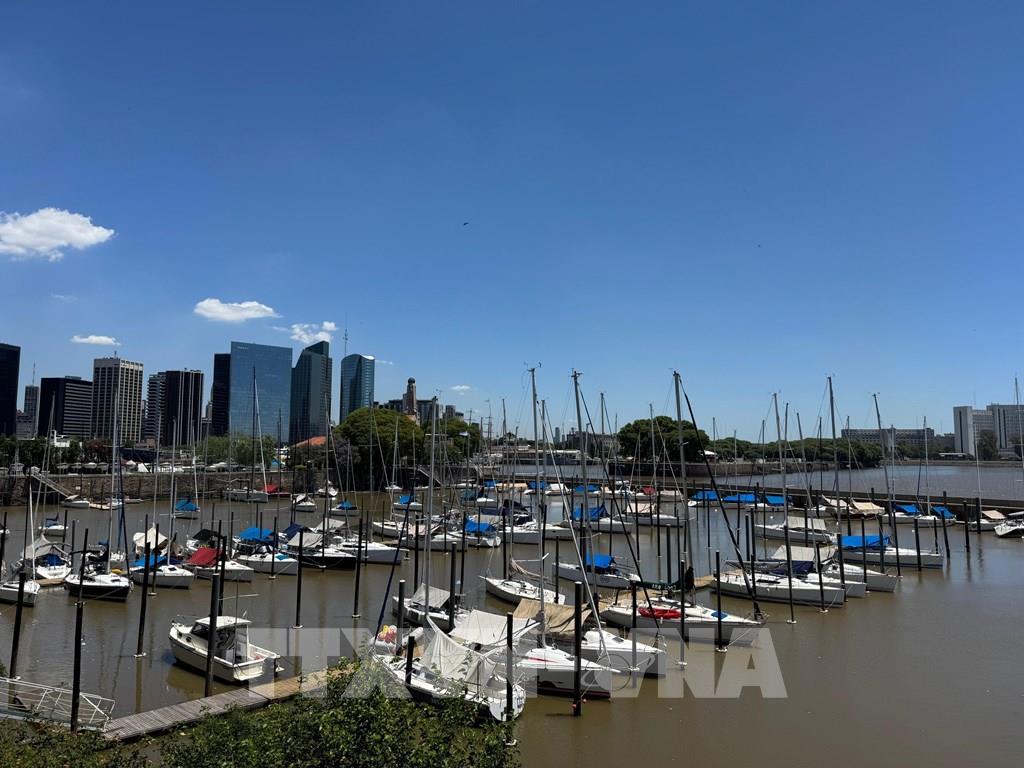 Khu vực trung tâm tài chính thành phố Buenos Aires (Argentina) nhìn từ sông Rio de la Plata. Ảnh: Diệu Hương-PV TTXVN tại Argentina
