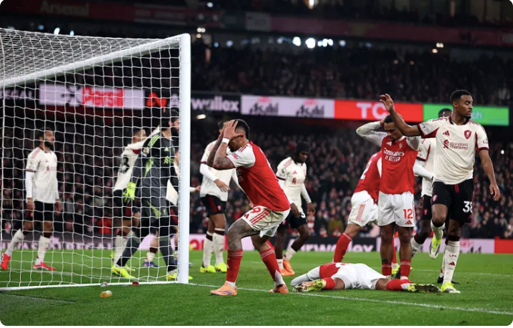 Dẫu vậy, phải đến những phút bù giờ, Arsenal mới có cú sút trúng đích đầu tiên trong hiệp hai, khi cả Jesus lẫn Martinelli đều không thể đánh bại thủ môn Alisson Becker trong các pha dứt điểm ở cự ly gần.