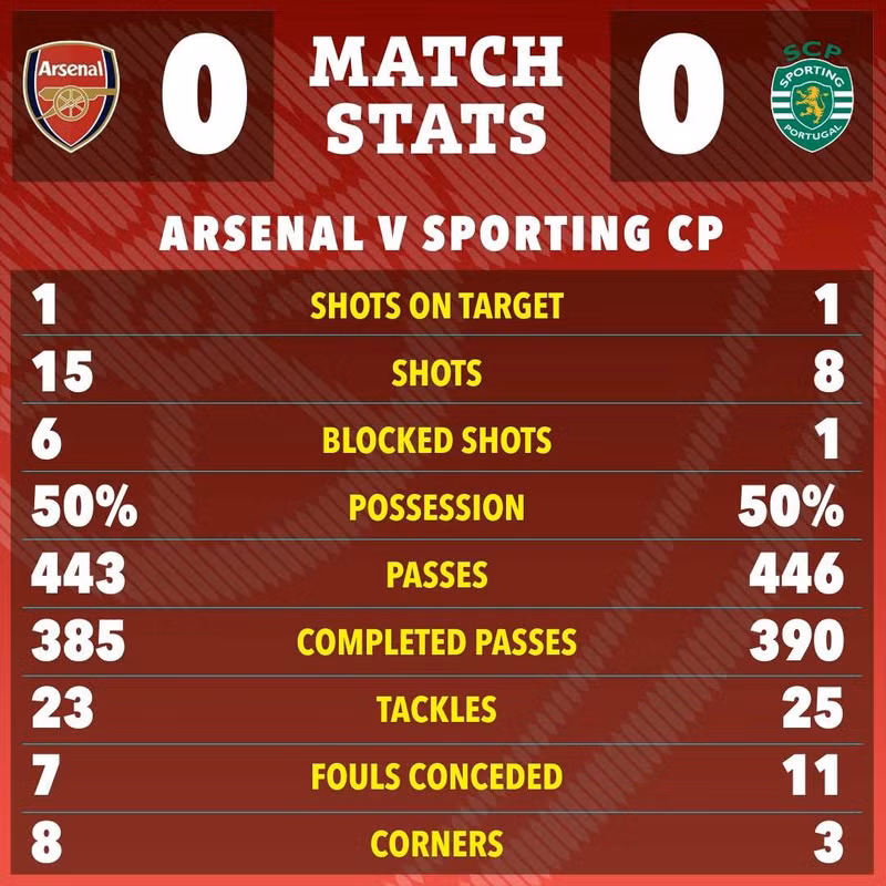 Dù được chơi trên sân nhà Emirates nhưng “Pháo thủ London” chơi không quá nổi bật, bất lực trước việc ghi bàn vào lưới các vị khách đến từ Bồ Đào Nha.