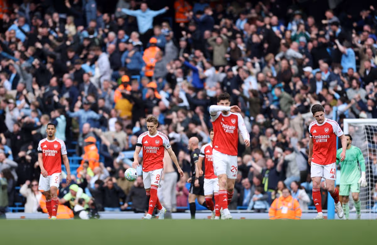 Kai Havertz đã gỡ hòa 1-1 cho Arsenal nhưng sau đó bỏ lỡ một cơ hội tuyệt vời ở phút 95 để giành lấy một điểm, điều mà lẽ ra đã thực sự xoay chuyển cục diện cuộc đua theo hướng có lợi cho pháo thủ thành London. Arsenal cũng hai lần sút bóng trúng cột dọc và khung gỗ, nhưng đội trưởng Martin Odegaard vẫn khẳng định họ có thể giành chức vô địch.