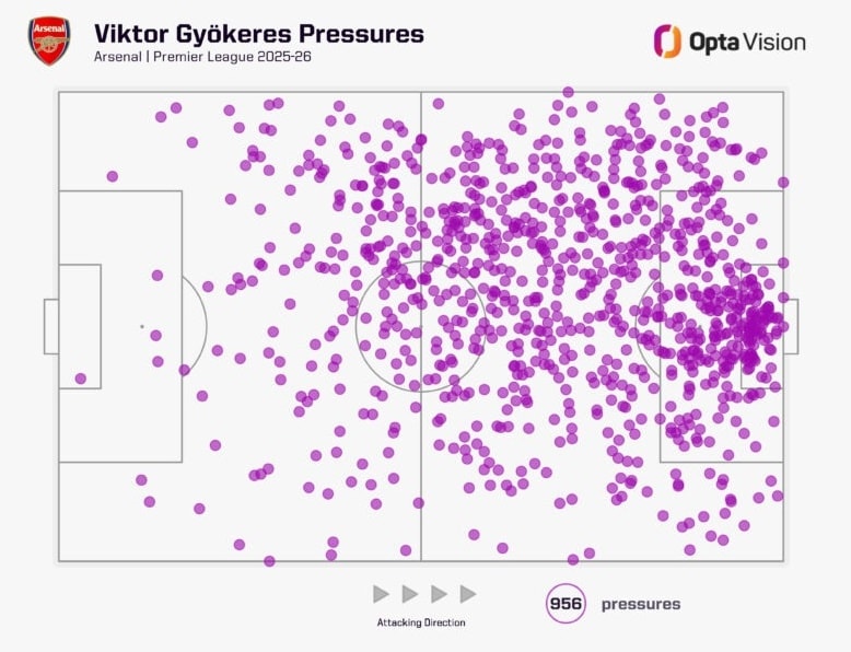 Biểu đồ cho thấy cách Gyokeres tạo ra áp lực lên đối phương.