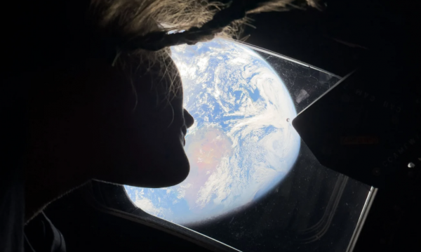Phi hành gia Christina Koch của NASA nhìn Trái đất từ một trong những cửa sổ của tàu vũ trụ Orion. Ảnh: NASA