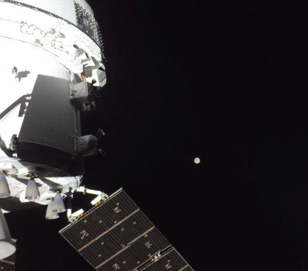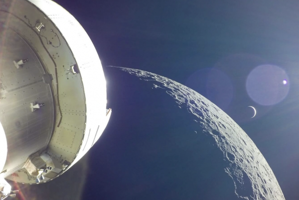 Trước đó, vào ngày thứ hai của sứ mệnh, hình ảnh mà các phi hành gia gửi về cho thấy Mặt trăng vẫn còn rất xa tàu Orion. Theo NASA, Orion dự kiến tiến vào vùng ảnh hưởng của Mặt trăng vào tối 5/4. Đây là khu vực mà trọng lực của thiên thể này tác động lên nó sẽ lớn hơn so với Trái đất. Ảnh: NASA