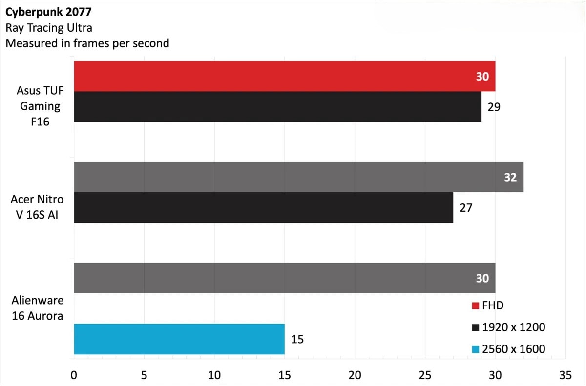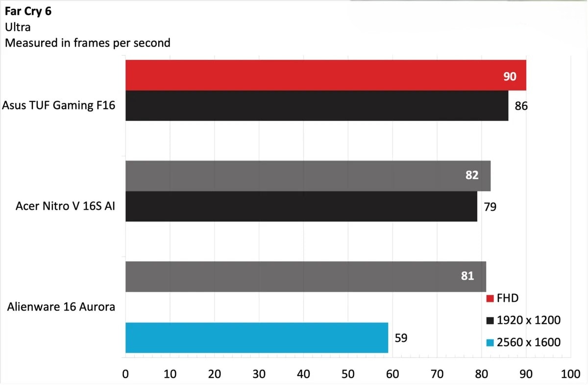 Nhìn chung, quyết định của Asus giúp TUF Gaming F16 mang lại trải nghiệm chơi game mượt mà ở độ phân giải 1920x1200, chứng tỏ rằng một GPU được cấp đủ điện năng có thể tạo ra sự khác biệt lớn.