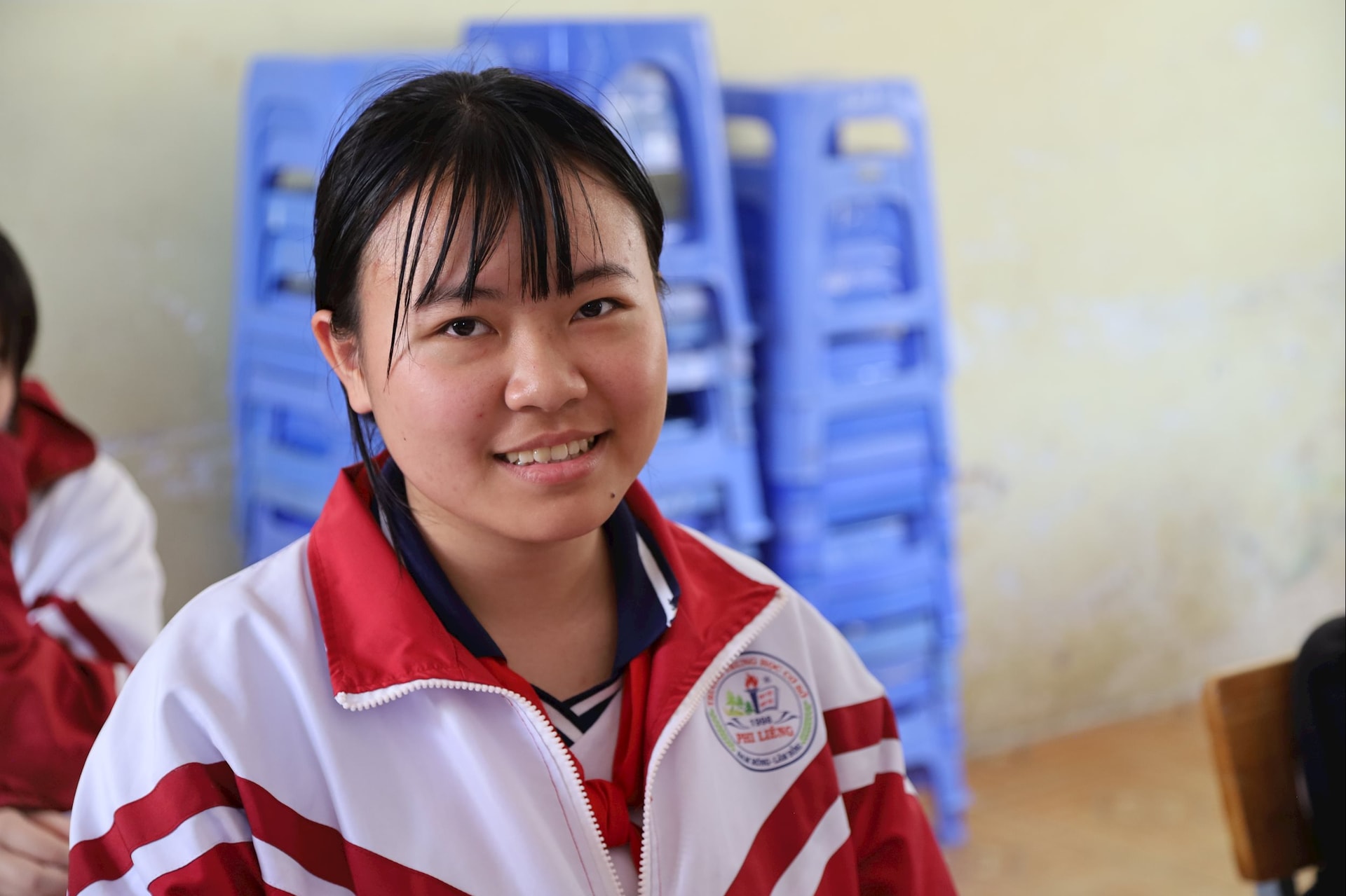 Em Âu Gia Hân, học sinh lớp 9A4, Trường THCS Phi Liêng, xã Đam Rông 1 (Lâm Đồng) mơ ước trở thành giáo viên dạy Toán, mang tri thức về xây dựng quê hương