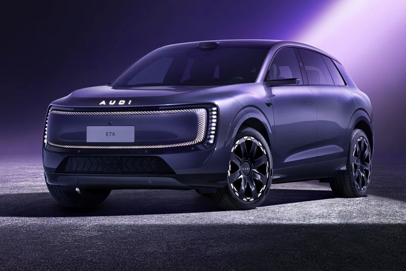 AUDI là thương hiệu xe điện mới được phát triển riêng cho thị trường Trung Quốc, ra mắt vào tháng 11/2024 và không sử dụng logo “bốn vòng tròn” quen thuộc của Audi truyền thống. Hiện tại, hãng mới chỉ có một mẫu xe thương mại là E5 Sportback, và E7X trở thành sản phẩm thứ hai, được phát triển từ concept AUDI E SUV từng xuất hiện vào cuối năm ngoái.