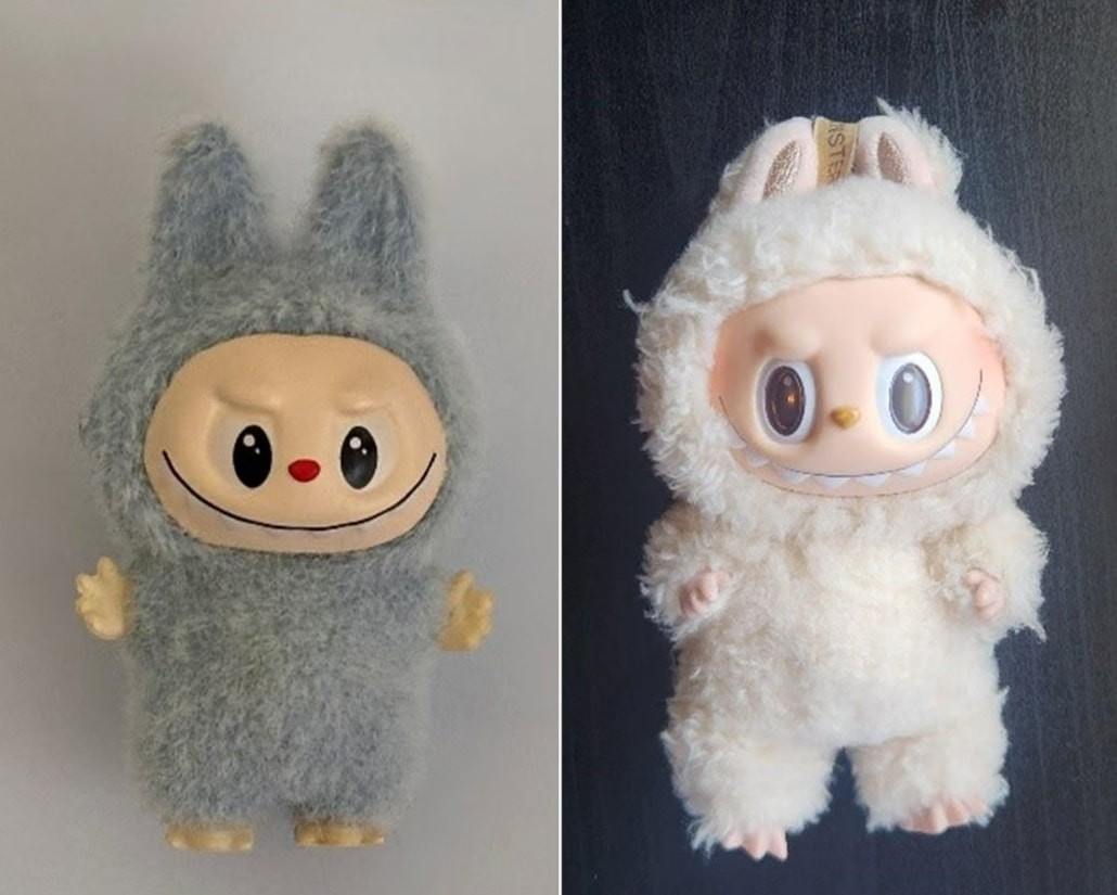 Búp bê Labubu giả (trái) và búp bê thật (phải). Ảnh: productsafety.gov/Nguồn VTV