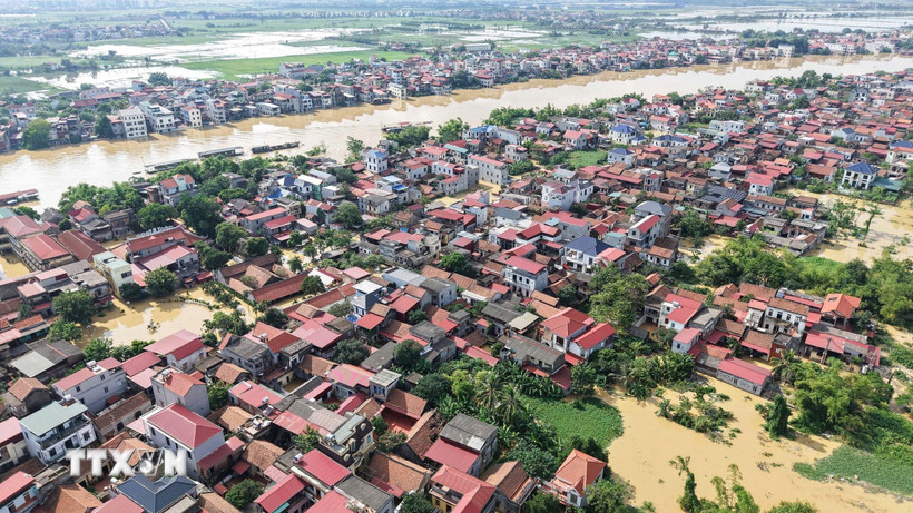 Phường Vân Hà, tỉnh Bắc Ninh bị nước lũ tràn vào gây ngập. (Ảnh: Thái Hùng/TTXVN)