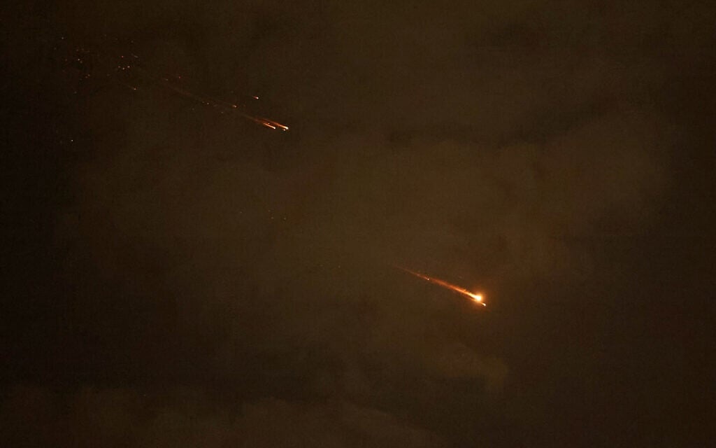 Các vệt đường bay của tên lửa đạn đạo Iran trên bầu trời TP Netanya (Israel) ngày 6-4. Ảnh: AFP