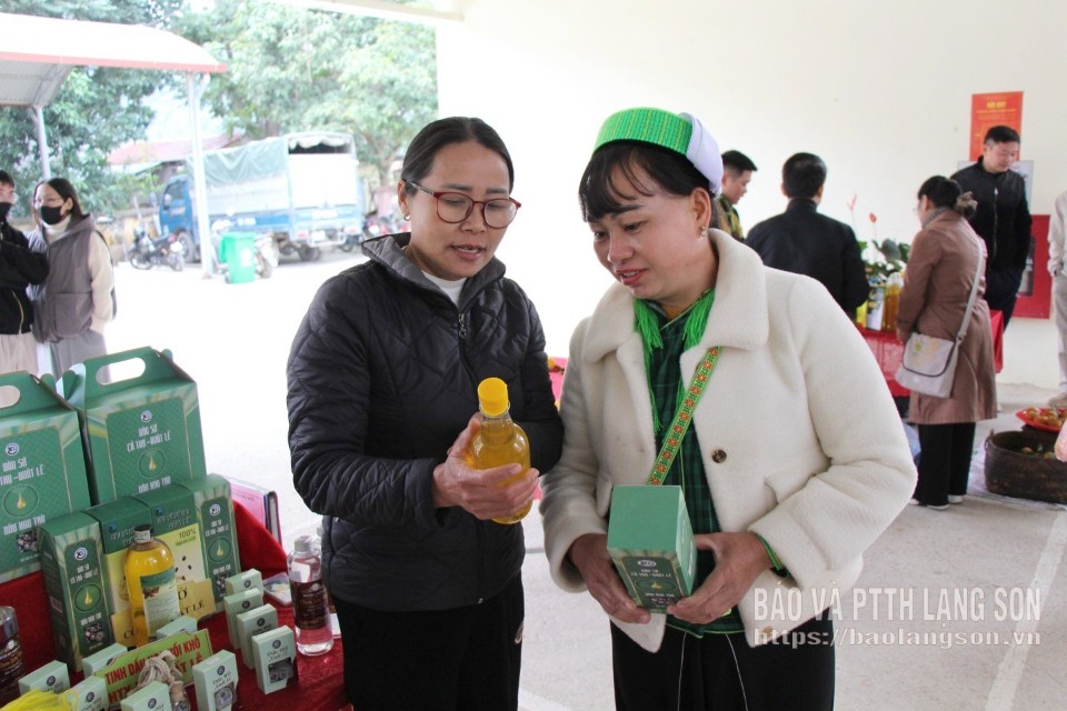 Nhận thức rõ vai trò của thị trường, bà Bẩy kiên trì đưa sản phẩm của HTX tham gia các hội chợ, chương trình xúc tiến thương mại trong và ngoài tỉnh. Dấu mốc đáng chú ý là việc sản phẩm rượu men lá Tam Sơn tửu của HTX được công nhận OCOP 3 sao vào năm 2023. Đây không chỉ là “tấm giấy thông hành” để sản phẩm đi xa hơn mà còn tạo thêm niềm tin cho thị trường, giúp HTX thuận lợi khi kết nối đối tác. Năm 2024, HTX tiếp tục ký kết hợp đồng tiêu thụ dầu sở cổ thụ Xuất Lễ với doanh nghiệp, từng bước hình thành chuỗi liên kết sản xuất - tiêu thụ. Với cách làm này, đầu ra của HTX không còn phụ thuộc vào một kênh duy nhất; sản phẩm được bao tiêu theo hợp đồng, giúp các thành viên yên tâm sản xuất, hạn chế rủi ro về giá cả.