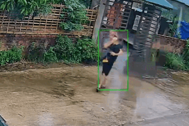 Theo diễn biến từ camera, người bà bế cháu nhỏ đi mua kẹo và đang trên đường về nhà. Lúc này, trời mưa, mặt đường ướt và trơn.
