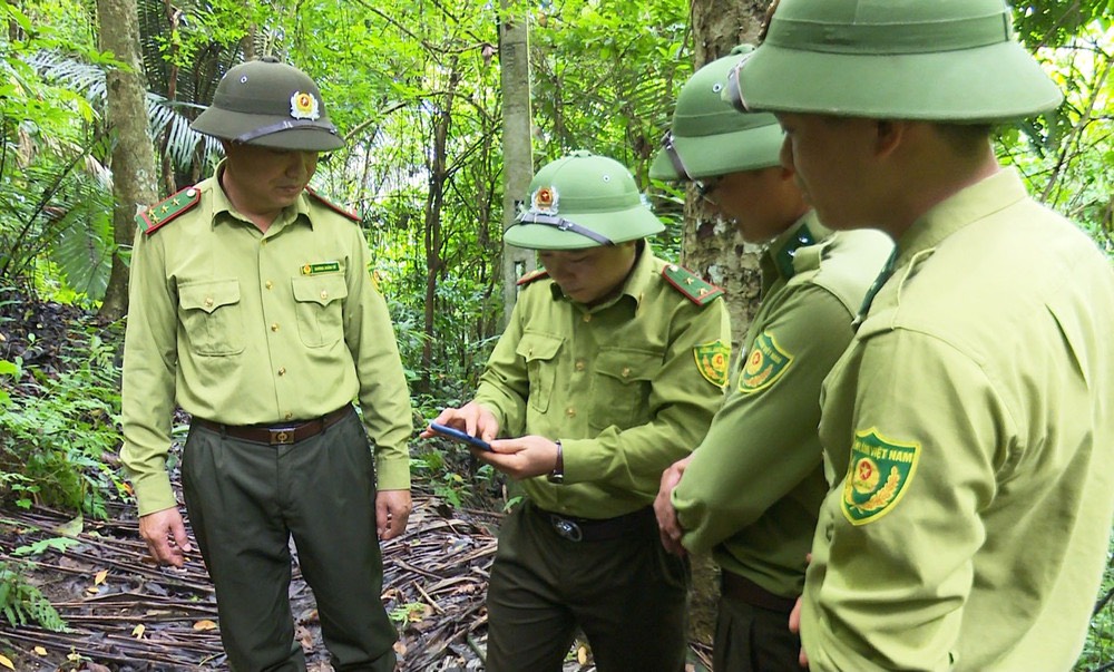 Lực lượng Kiểm lâm sử dụng thiết bị số để quan sát, theo dõi diễn biến các khu vực rừng đặc dụng. Ảnh Đình Văn.