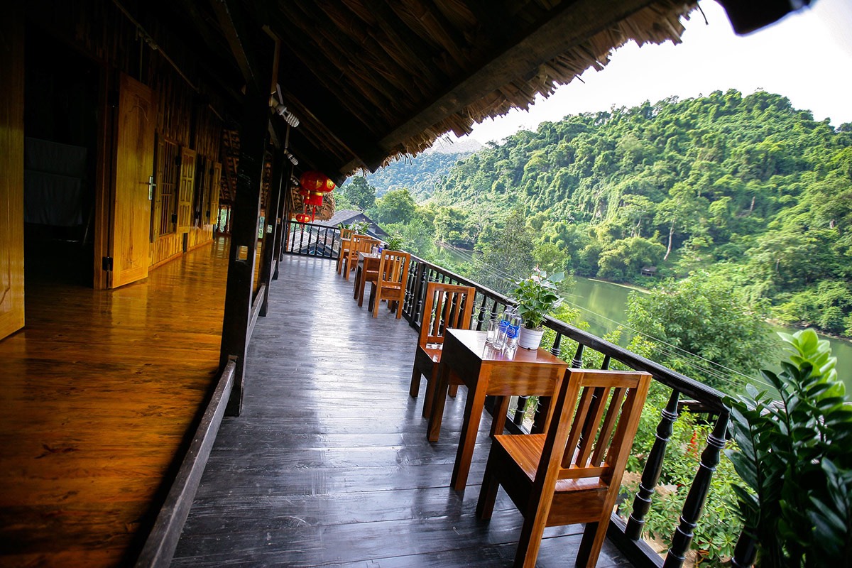 Nhà sàn được bảo tồn, điểm dừng chân cho du khách nghỉ ngơi bên hồ.