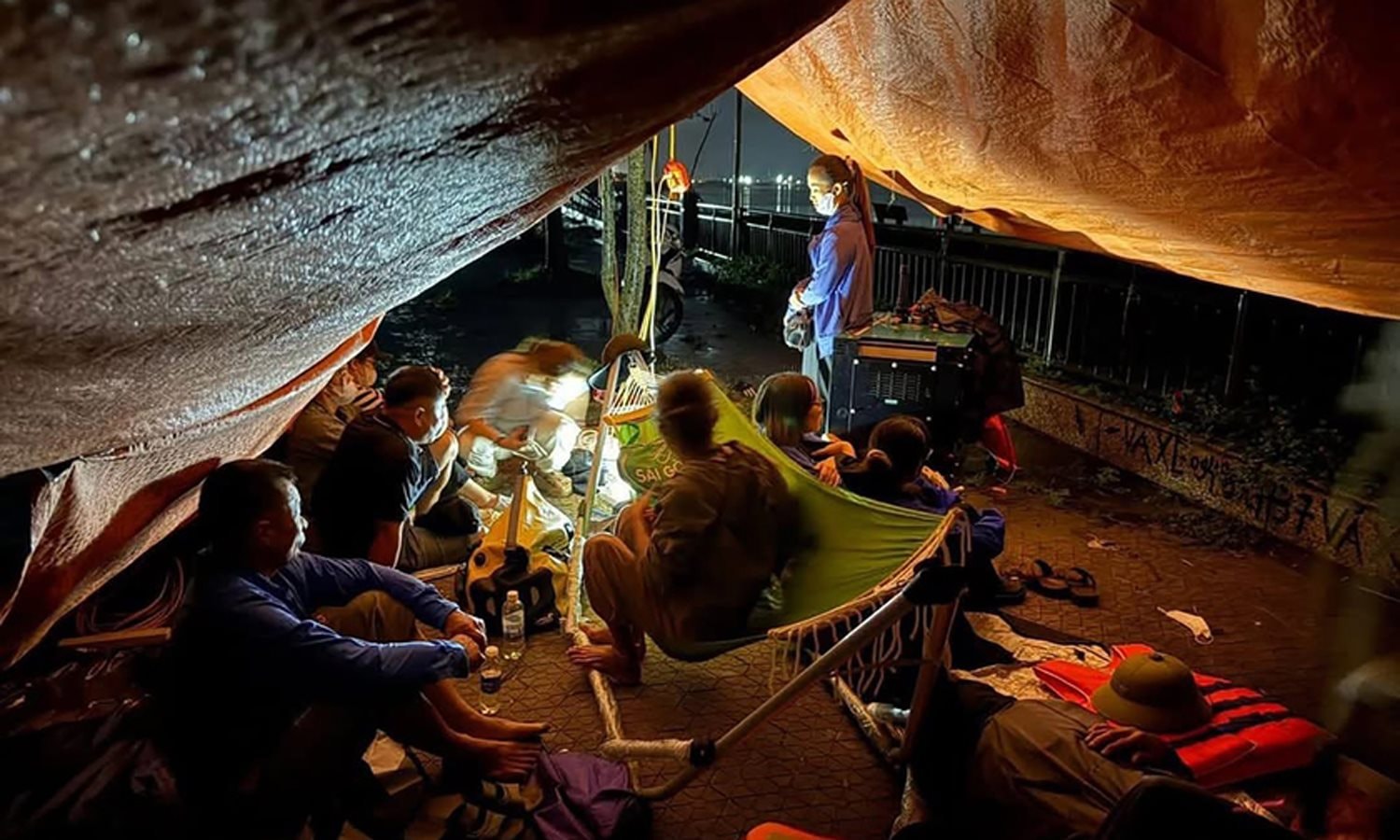 Người thân đang túc trực bên bờ sông Lam chờ tin từ lực lượng tìm kiếm cứu hộ.