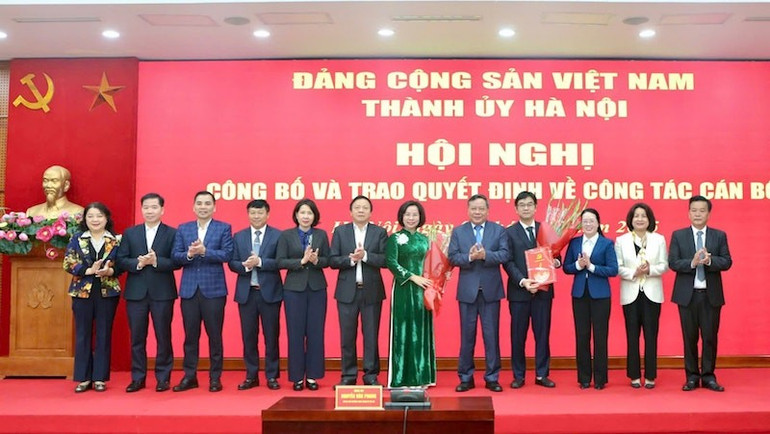 Lãnh đạo Thành ủy Hà Nội chúc mừng 2 lãnh đạo mới của Ủy ban Mặt trận Tổ quốc thành phố Hà Nội.