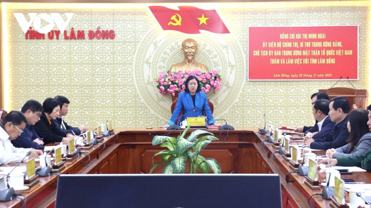 Chủ tịch Ủy ban Trung ương MTTQ Việt Nam Bùi Thị Minh Hoài đề nghị tỉnh Lâm Đồng tập trung cao độ hỗ trợ người dân trong và sau mưa lũ.