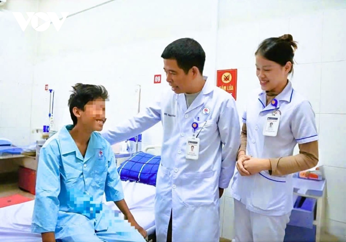 Trước đó, ngày 6/11, trên đường đi học về trong lúc mưa lớn, đường trơn trượt, Hồ Văn H.R. (trú xã Đakrông, tỉnh Quảng Trị) gặp tai nạn giao thông và được chuyển đến Trung tâm Y tế huyện Đakrông cấp cứu. Sau đó, bệnh nhân tiếp tục được chuyển đến khoa Hồi sức cấp cứu, Bệnh viện Đa khoa tỉnh Quảng Trị trong tình trạng đa chấn thương nghiêm trọng, đe dọa tính mạng. Kết quả chẩn đoán cho thấy bệnh nhân tổn thương nặng. Đặc biệt, bệnh nhân bị gãy trật cột sống đoạn L2–L3, kèm máu tụ ngoài màng tủy, tủy dập và rách màng tủy, nguy cơ để lại di chứng nặng nề.