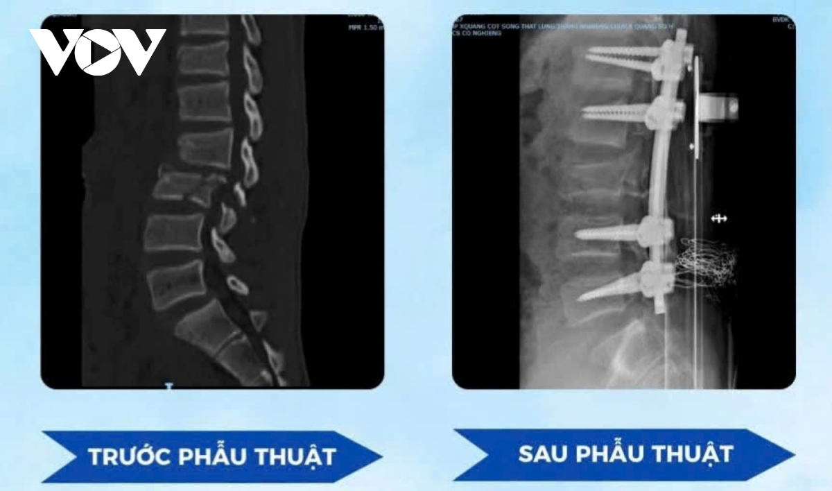 Hình ảnh chụp cột sống của bệnh nhân trước và sau phẫu thuật