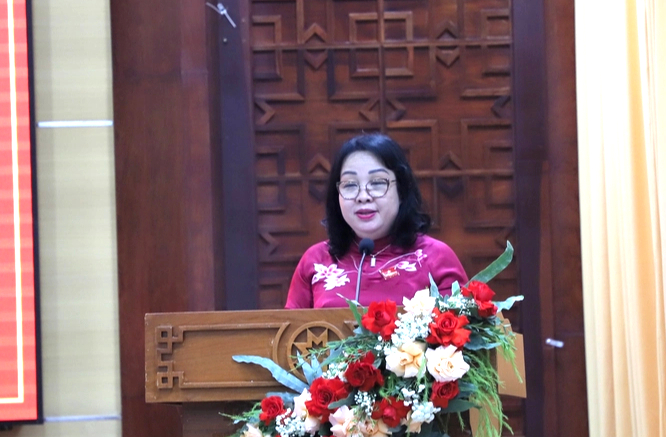 Chủ tịch HĐND tỉnh Đắk Lắk nhiệm kỳ 2026 - 2031 Cao Thị Hòa An phát biểu nhận nhiệm vụ. Ảnh: Ngọc Hùng