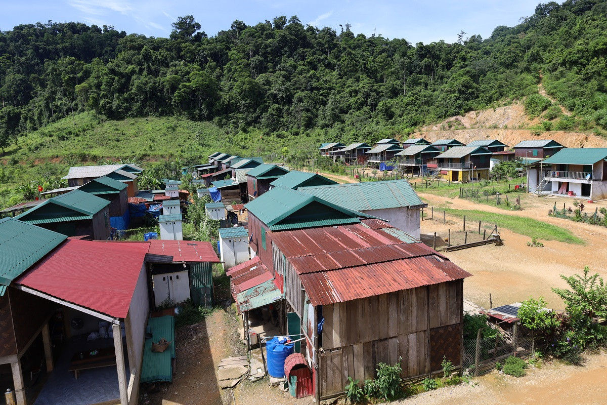 Khu tái định cư mới nằm cách địa điểm bản cũ khoảng 500m, có diện tích quy hoạch khoảng 3ha, với 34 ngôi nhà sàn khung bê tông, tường ván phin, mái tôn chống nóng, mỗi căn rộng 40m2, trị giá mỗi căn nhà từ 90 triệu đồng trở lên.