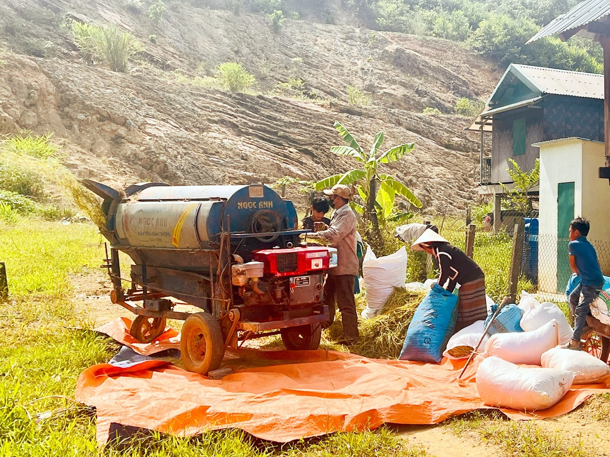 Người dân bản Sắt sử dụng máy tuốt lúa phục vụ sản xuất nông nghiệp. Ảnh: CTV