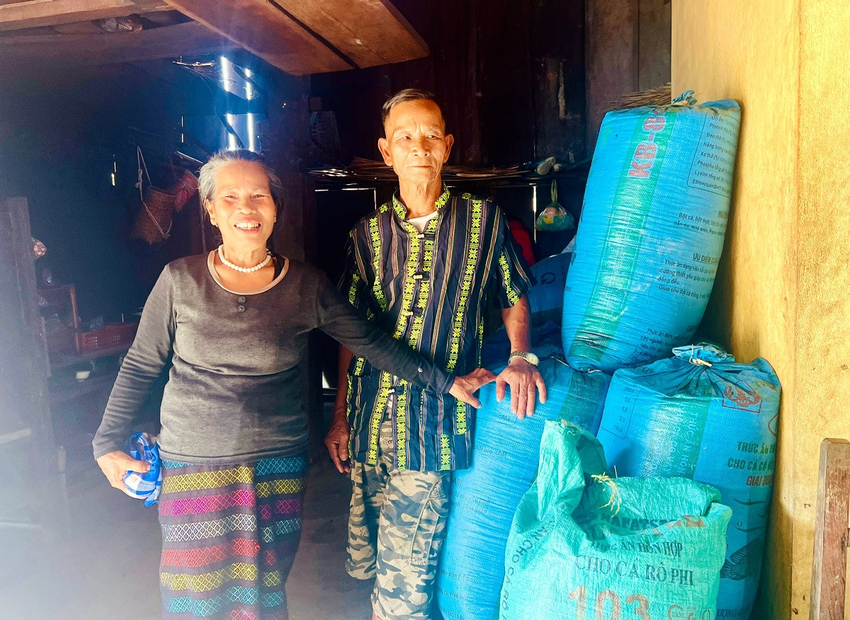 Vợ chồng già làng Nguyễn Văn Linh sau vụ mùa bội thu. Ảnh: CTV