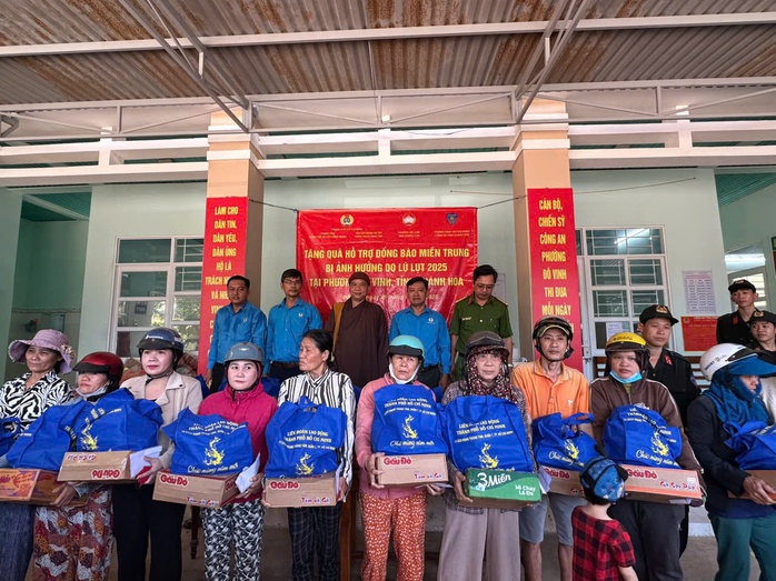 Ngày 26-12, Trung tâm Công tác Xã hội Công Đoàn (LĐLĐ TP HCM) phối hợp Nghiệp đoàn xe ôm công nghệ Bình Tân đến thăm, tặng quà cho người dân bị ảnh hưởng bởi bão lũ tỉnh Khánh Hòa.