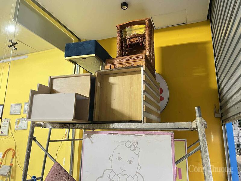 Người dân sử dụng giàn giáo để kê cao tài sản tránh bị lũ lụt gây hư hỏng.