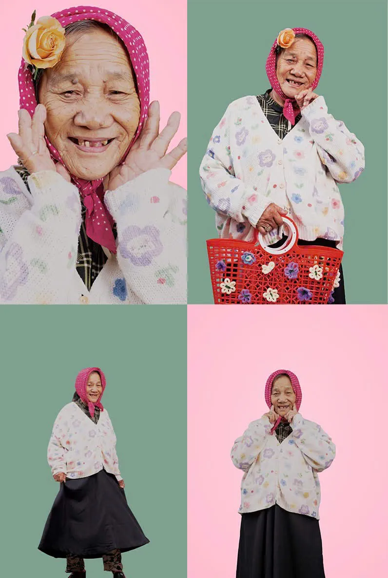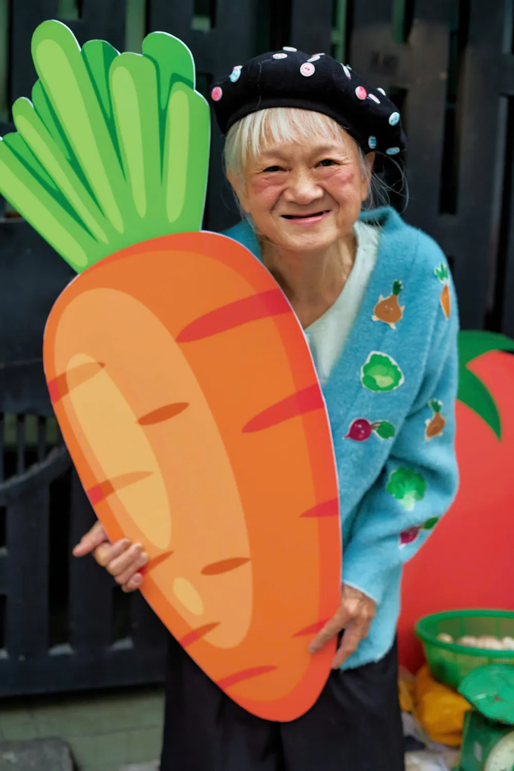 Sau khi trò chuyện và nhận được sự đồng ý của bà, Mỹ quyết định lấy chính nghề bán rau làm cảm hứng, biến những bó sả, trái bầu, quả cà thành đạo cụ để dựng nên một “bà tiên” bước ra từ truyện cổ tích. “Tụi mình trang điểm nhẹ nhàng cho ngoại và in những sticker hình rau củ rồi dán lên đồ, phối gam màu tươi sáng theo đúng sở thích của bà, như áo hồng, hoa nhí…” - Mỹ tâm sự.