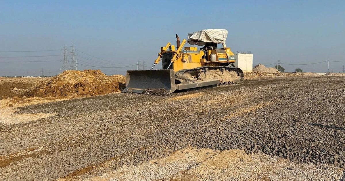 Dự án Xây dựng đường trục Đông - Tây (đoạn nối Quốc lộ 37 với ĐT295), huyện Hiệp Hòa có tổng chiều dài tuyến khoảng 5,7 km, tổng mức đầu tư khoảng 473 tỷ đồng. Ảnh: Thùy Linh