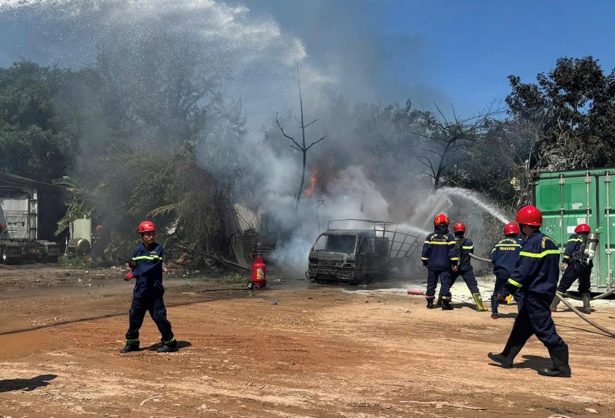 Ngay sau đó, Phòng Cảnh sát PCCC và CNCH huy động 5 xe chữa cháy, 1 xe cứu nạn cứu hộ cùng hàng chục CBCS đến hiện trường dập lửa. Đến 13 giờ 10 cùng ngày, ngọn lửa được dập tắt hoàn toàn, không lan sang các phương tiện khác. Vụ cháy làm thiêu rụi 1 xe tải, 1 xe máy, diện tích khoảng 12m². Nguyên nhân và thiệt hại cụ thể đang được cơ quan chức năng điều tra, thống kê.