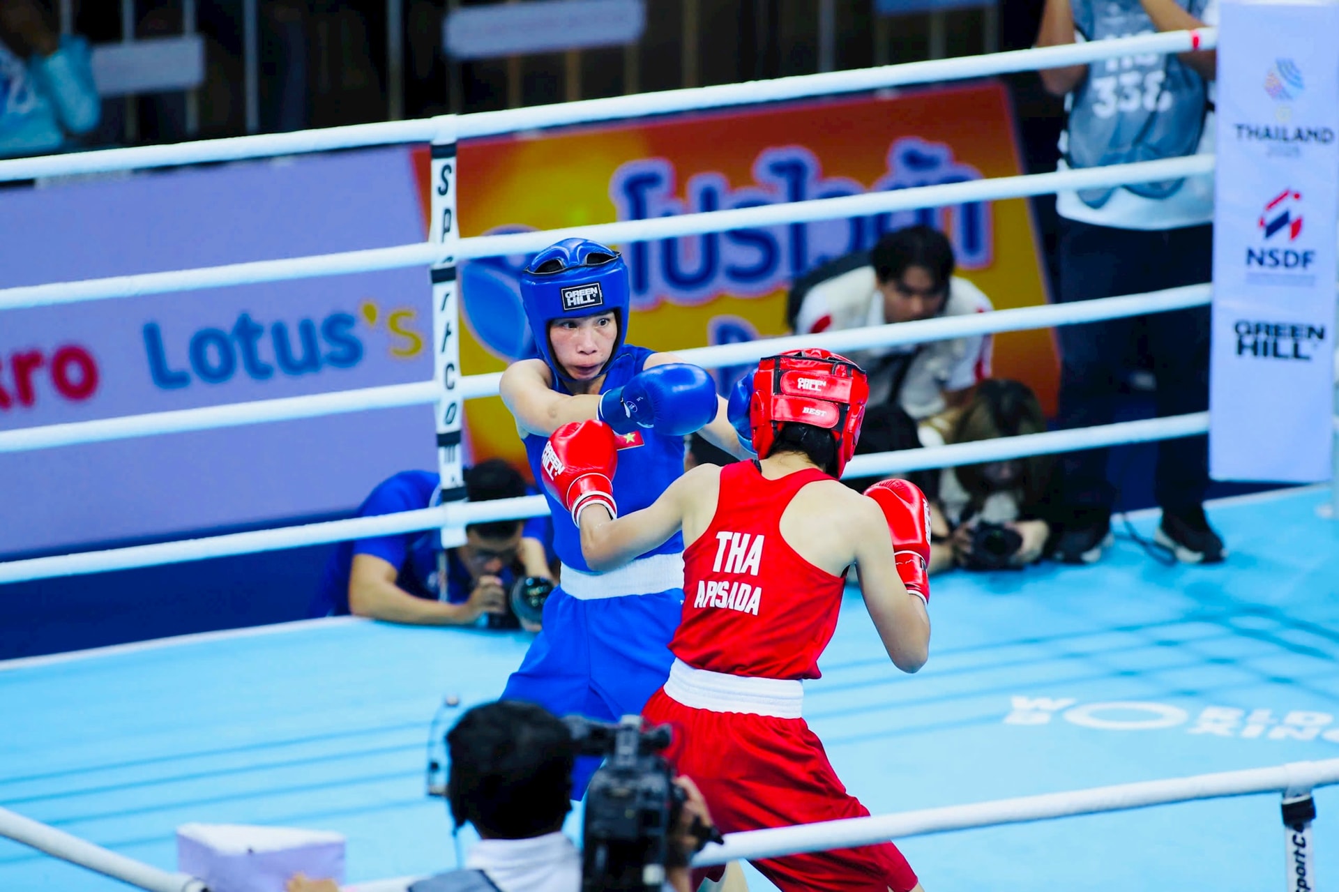 Võ sĩ Hà Thị Linh thi đấu tại SEA Games 33. Ảnh Như Cường