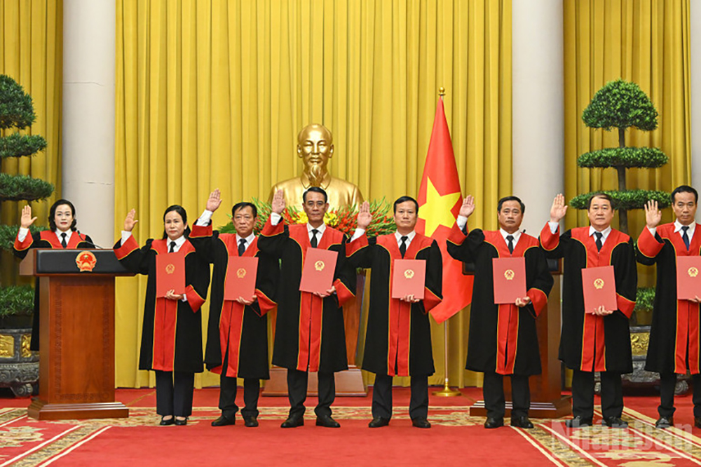 Tại buổi lễ, Phó Chủ nhiệm Văn phòng Chủ tịch nước Phạm Thanh Hà đã công bố quyết định của Chủ tịch nước bổ nhiệm chức danh Thẩm phán TAND Tối cao đối với tám cán bộ, gồm: