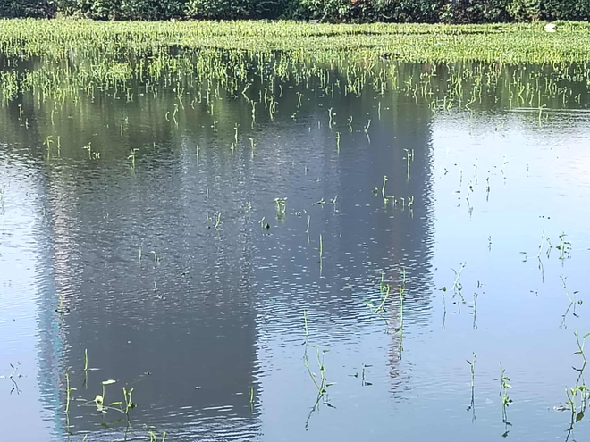 Sau ngập lụt, những ruộng rau muống của người nông dân phường Đại Mỗ chìm trong biển nước. Ảnh: Thanh Huyền.