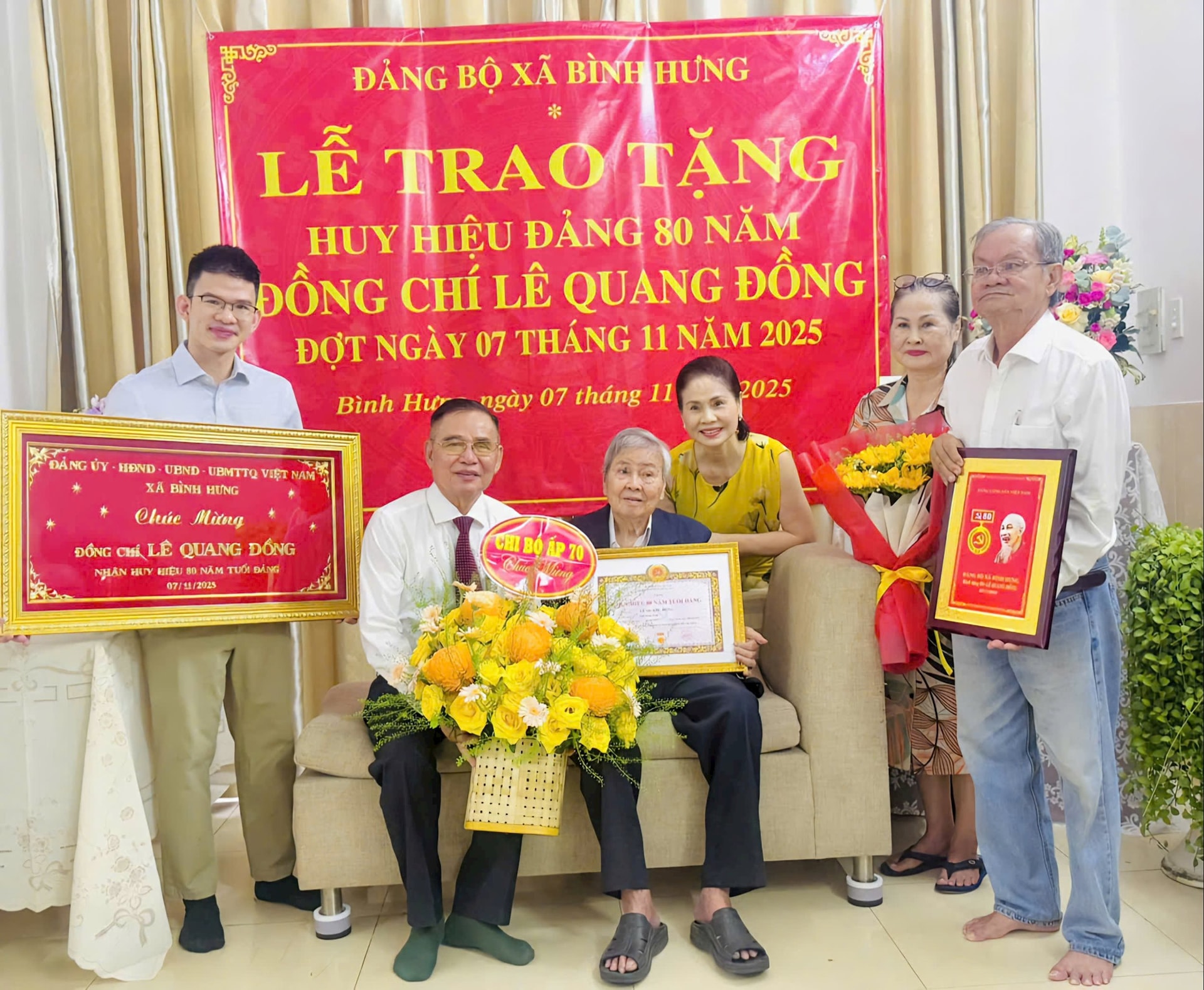 Tấm Huy hiệu đỏ thắm trên ngực áo ông không chỉ là biểu tượng của 80 năm đứng trong hàng ngũ của Đảng, mà còn là minh chứng của cả một đời kiên định, trung thành và tận hiến.