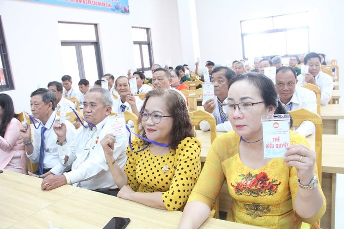 Các đại biểu biểu quyết dự thảo Nghị quyết Đại hội đại biểu Ủy ban MTTQ Việt Nam xã Bình Lợi nhiệm kỳ 2025 - 2030