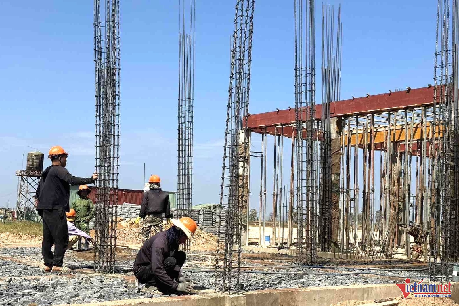 Kết thép đổ trụ bê tông. Ảnh: Hải Dương