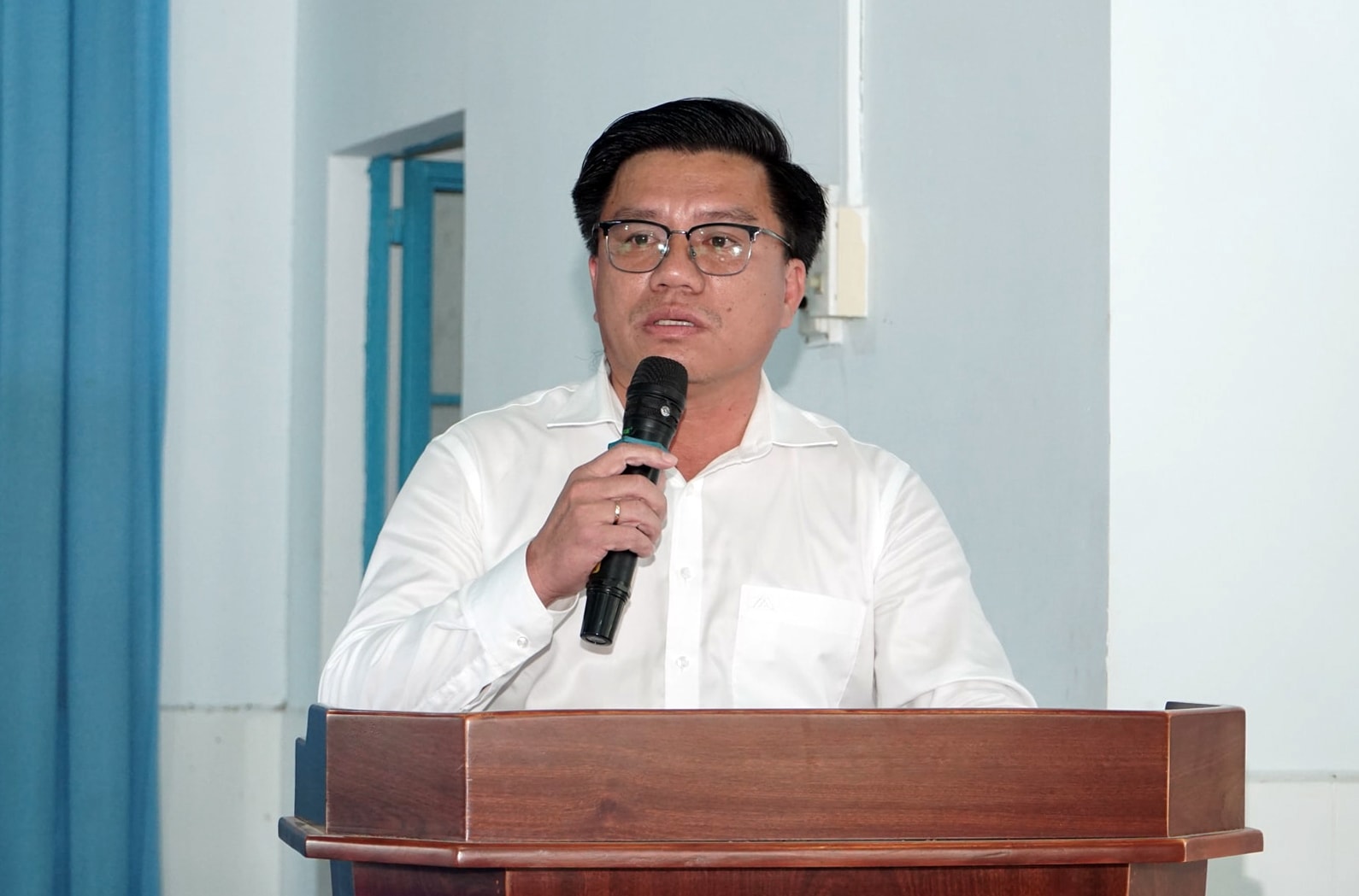 Ông Đặng Hồng Sỹ, Phó Bí thư Thường trực Tỉnh ủy Lâm Đồng trình bày chương trình hành động tại Hội nghị
