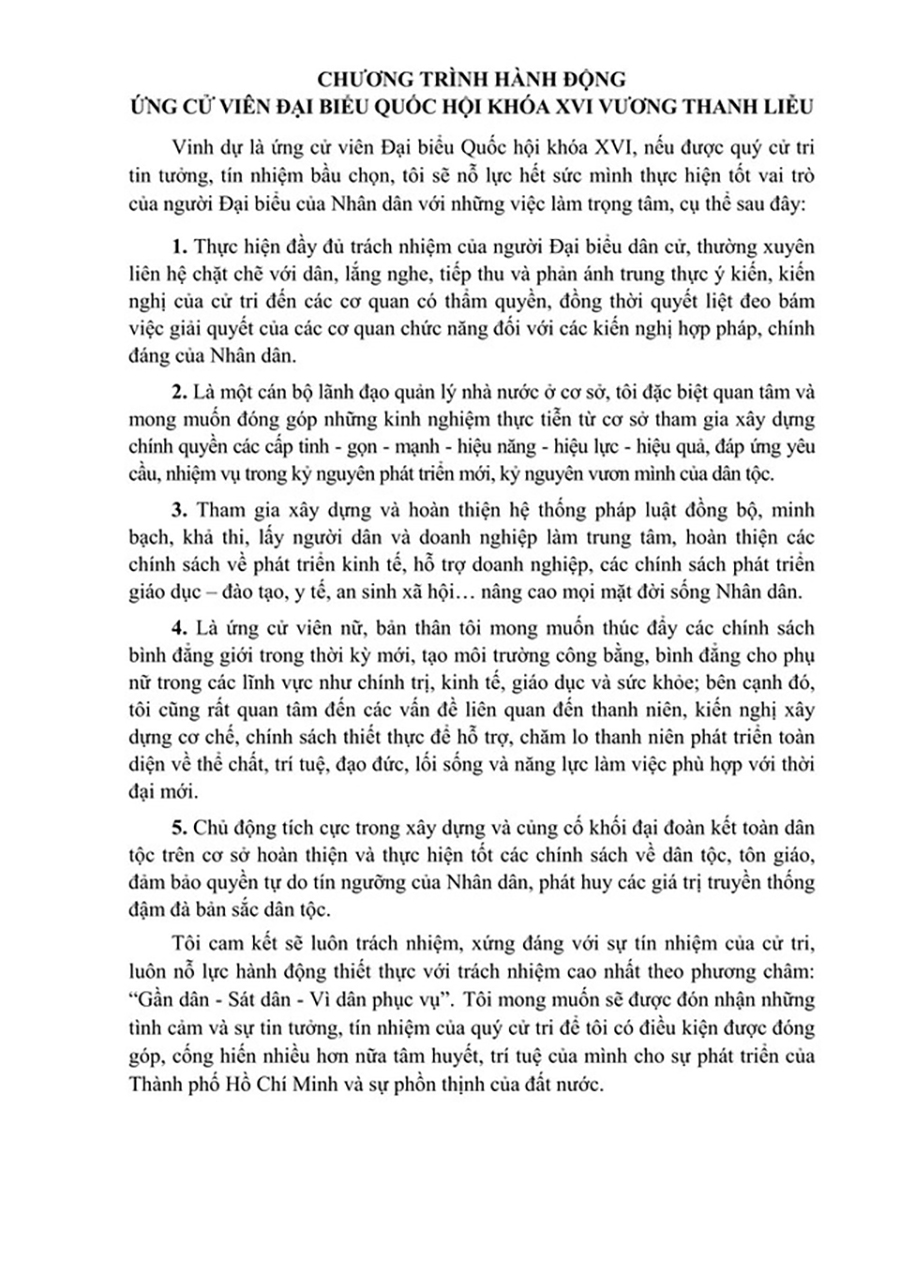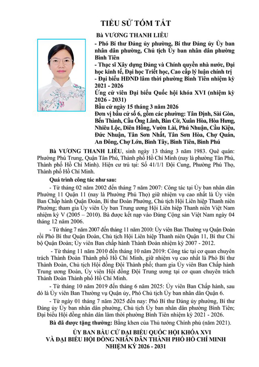 Bà Vương Thanh Liễu, Chủ tịch UBND phường Bình Tiên, ứng cử đại biểu Quốc hội tại đơn vị bầu cử số 6.
