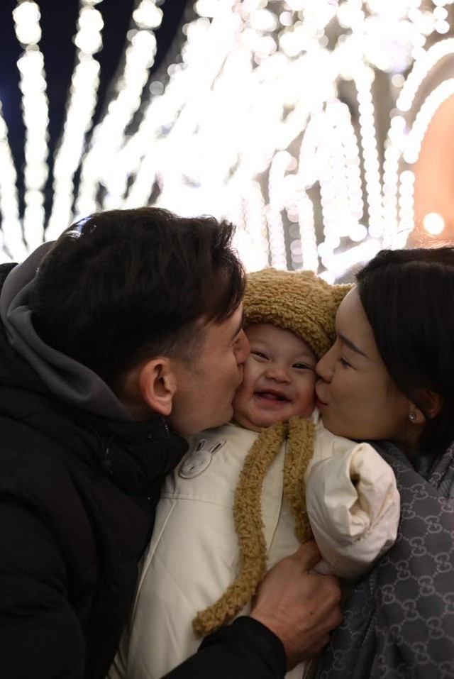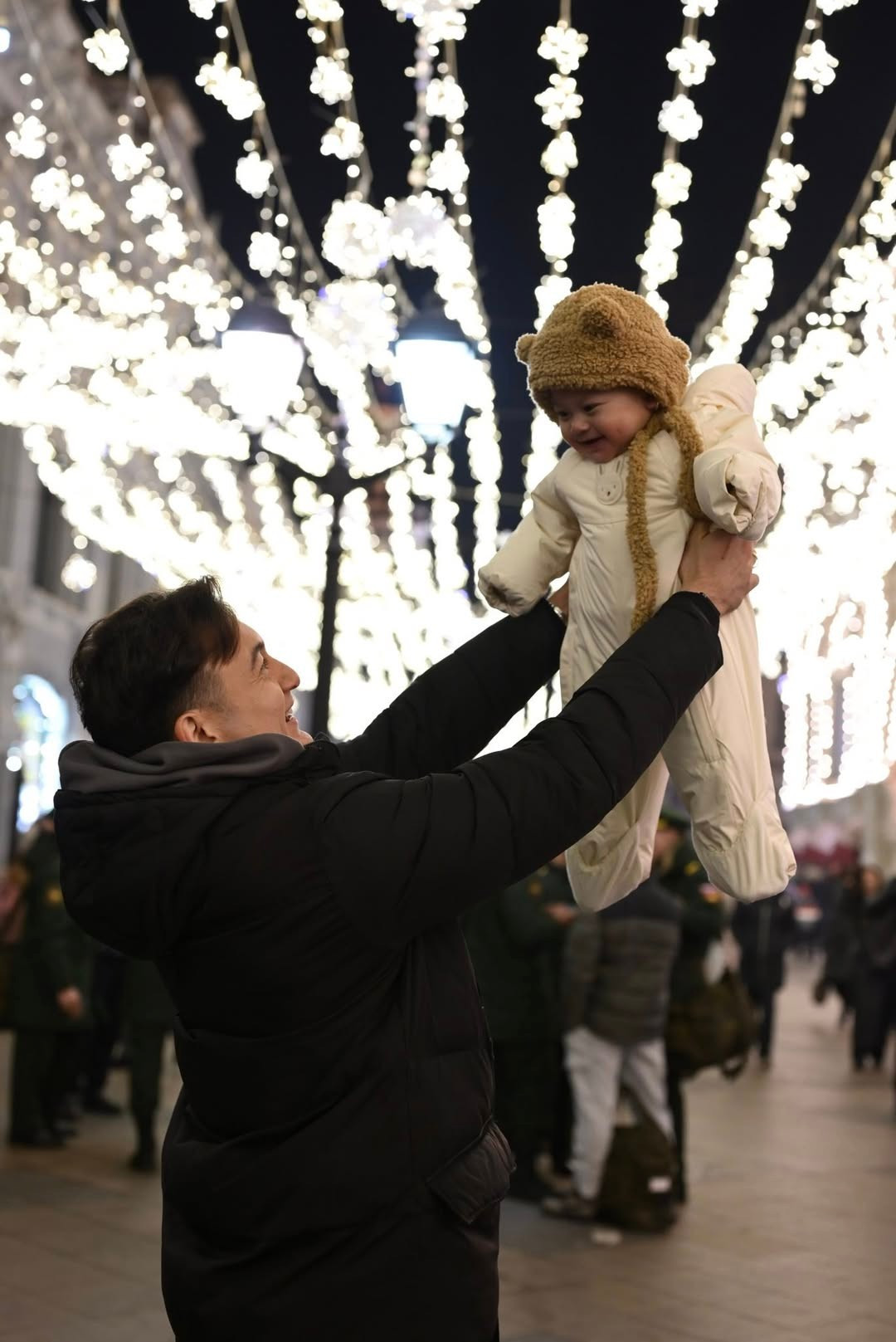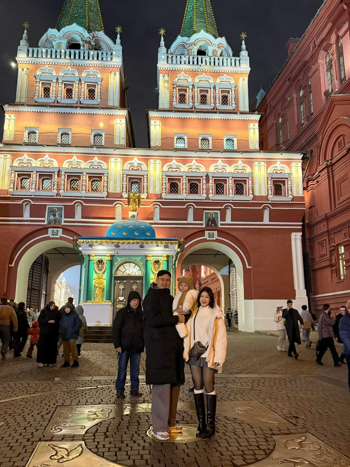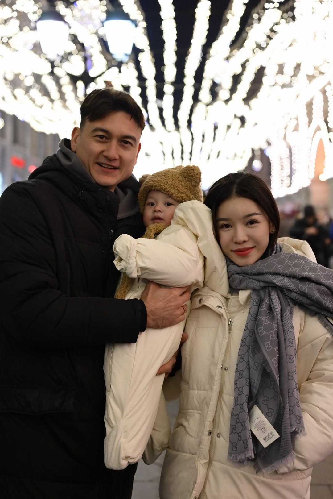 Loạt ảnh được chia sẻ cho thấy trọn vẹn niềm hạnh phúc viên mãn của gia đình nhỏ. Giữa không gian đường phố Moscow được trang hoàng lộng lẫy với ánh đèn lung linh, vợ chồng Văn Lâm và con trai đã tạo nên những khoảnh khắc đáng yêu và giàu cảm xúc. (Ảnh: IGNV)