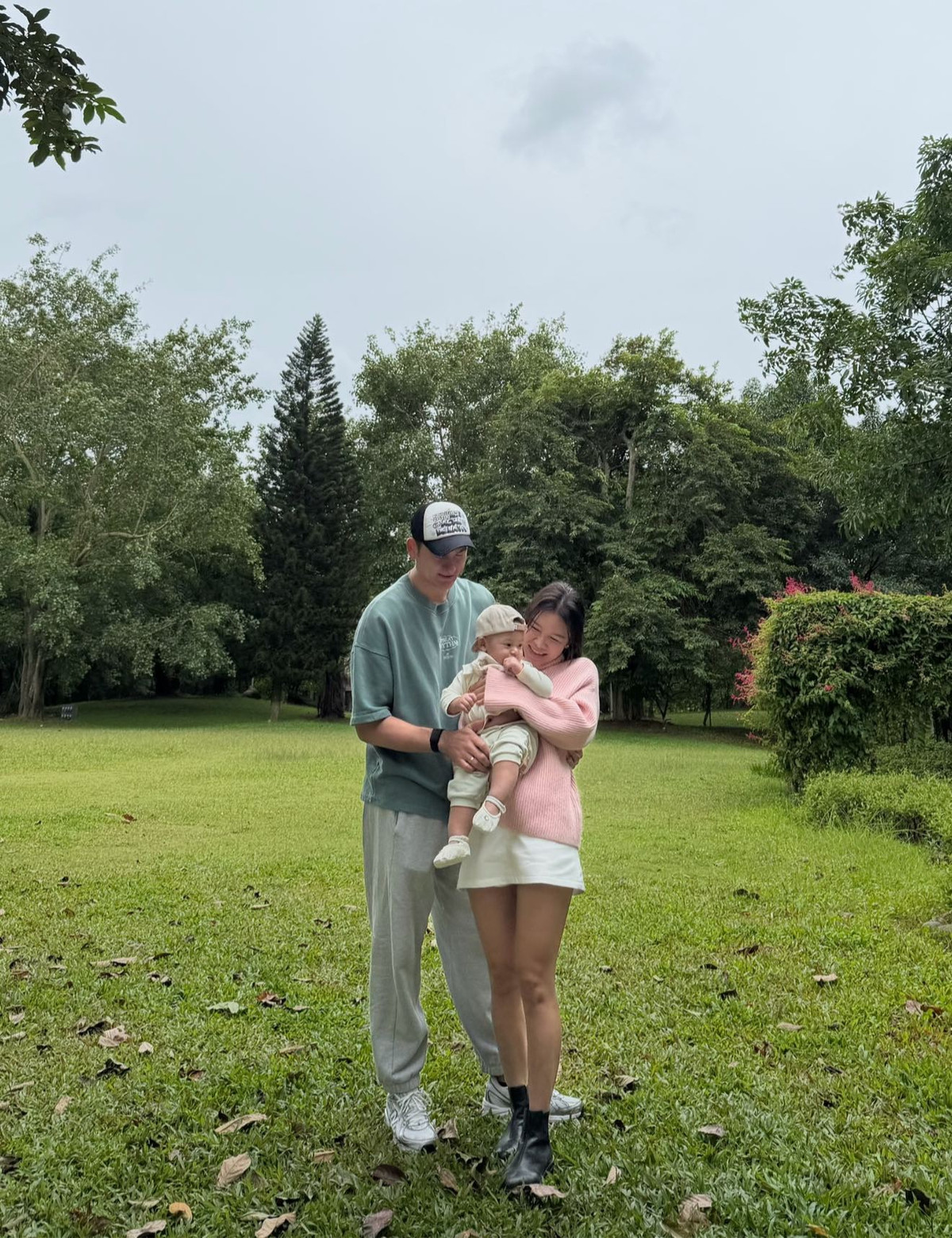 Trong loạt ảnh, thủ thành Đặng Văn Lâm và bà xã Yến Xuân cùng bé Gấu xuất hiện với trang phục mùa đông ấm áp. Bé Gấu với chiếc áo khoác phao màu kem và mũ len tai gấu ngộ nghĩnh trở thành tâm điểm chú ý. (Ảnh: IGNV)