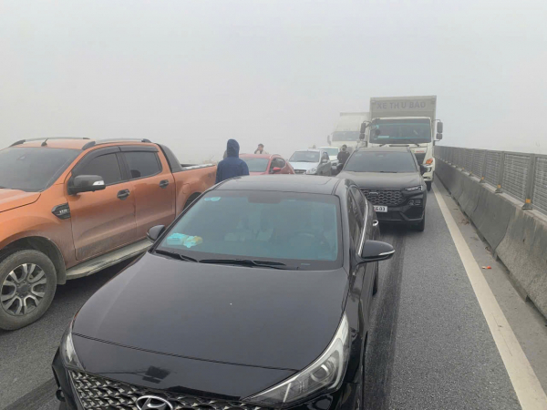 Vụ tai nạn khiến cao tốc ùn tắc.