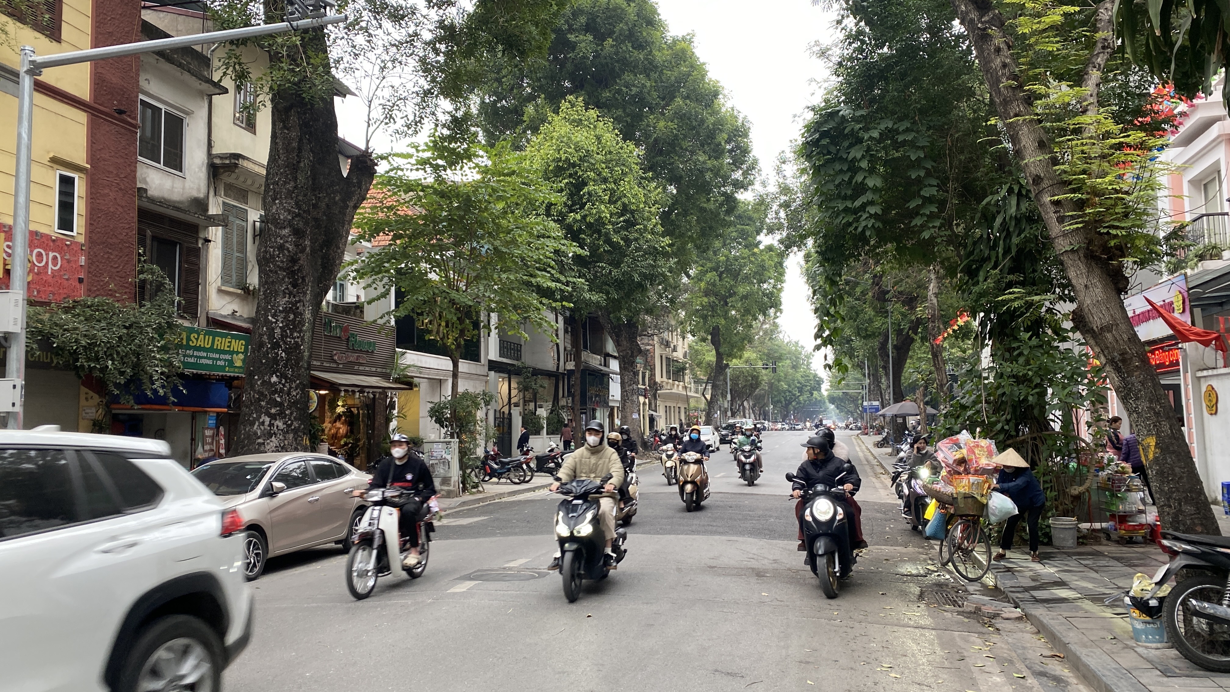 Trung tâm TP Hà Nội sáng 2-2, trời âm u, có sương mù nhẹ và mưa bụi. Ảnh: PHÚC HẬU