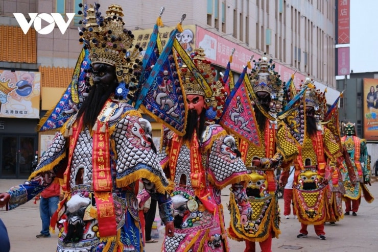 Trong dịp này, tượng Ma Tổ được rước qua các con phố trong tiếng trống, chiêng và nhạc lễ truyền thống. Điểm gây ấn tượng mạnh nhất với du khách chính là nghi thức đốt pháo dày đặc. Từng dải pháo đỏ được treo dài trước cửa nhà, khi đoàn rước đi qua, pháo được châm lửa đồng loạt tạo nên những tràng nổ giòn vang và khói đỏ phủ kín không gian.