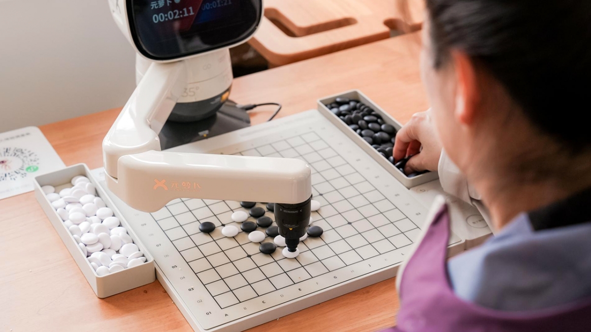 Người máy chơi cờ với người cao tuổi ở trạm chăm sóc - Ảnh: CCTV