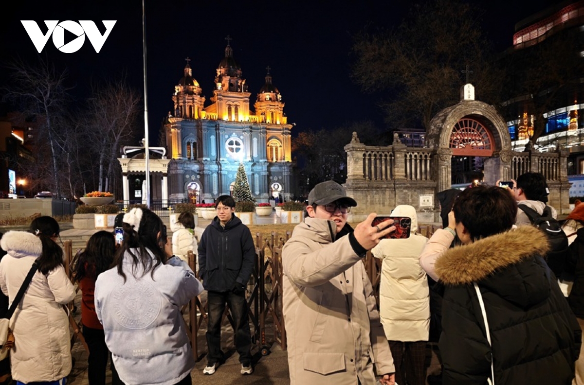 Càng về khuya, lượng người đổ về một số nhà thờ càng đông, trong đó có nhà thờ Thánh Giuse ở phố đi bộ Vương Phủ Tỉnh. Tuy nhiên, theo lực lượng chức năng, chỉ những người có giấy mời mới được đến gần và vào trong nhà thờ. Những người khác, dù theo đạo, cũng chỉ được tới gần chụp ảnh sau 1h sáng 25/12. Nhà thờ Thánh Giuse còn được gọi là Vương Phủ Tỉnh Thiên Chúa Đường hoặc Đông Đường, được xây dựng vào đầu thế kỷ 20. Đây là một trong bốn Nhà thờ Công giáo cố kính nhất của Tổng giáo phận Bắc Kinh.
