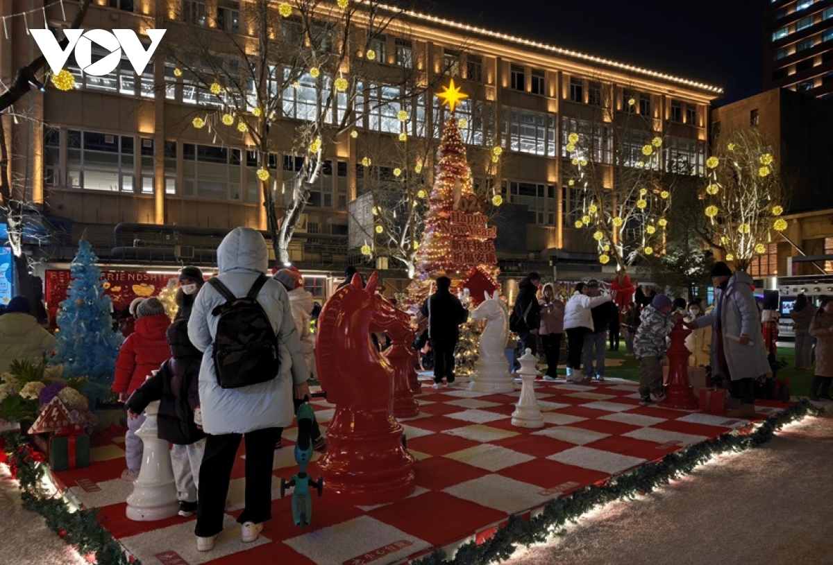 Nếu đi ngoài đường phố Bắc Kinh, người ta sẽ không thấy bóng dáng của Noel tại đây. Nhưng khi đến các khu vui chơi giải trí lớn, các trung tâm thương mại hiện đại và cao cấp có trang trí cây thông hoặc tiểu cảnh Noel, không khí sẽ trở nên rộn ràng hơn hẳn, với lượng người tập trung đông.